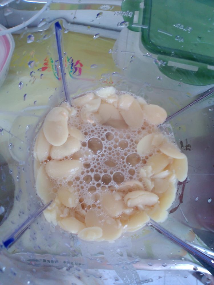 5.将煮软的豆子捞起来,放入到搅拌机加适量清水,不要太多,能让搅拌机工作就行,开始搅拌。